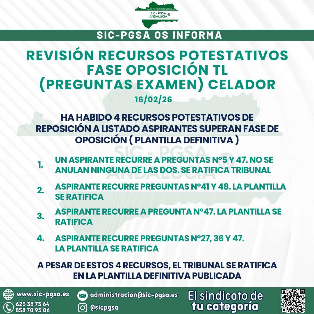 ACLARACIONES TRIBUNAL CELADOR – REVISIÓN RECURSOS POTESTATIVOS FASE OPOSICIÓN TL