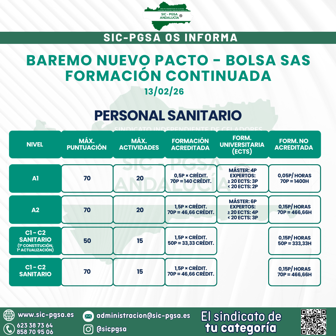 BAREMO NUEVO PACTO FORMACIÓN CONTINUADA PERSONAL SANITARIO – BOLSA SAS