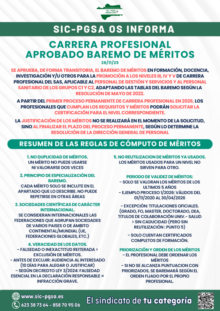 CARRERA PROFESIONAL – BAREMO DE MÉRITOS APROBADO