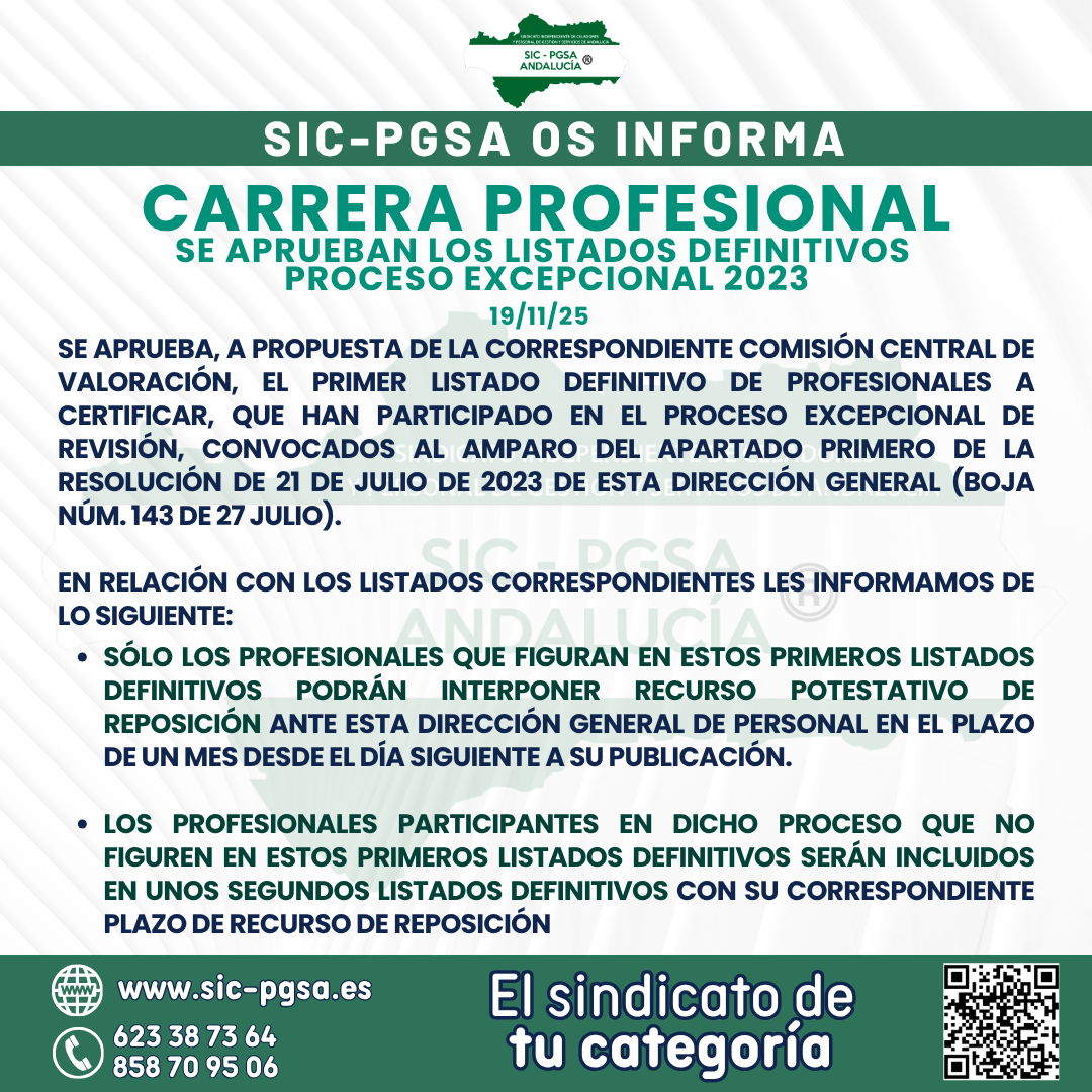 CARRERA PROFESIONAL. SE APRUEBAN LOS LISTADOS DEFINITIVOS. PROCESO EXCEPCIONAL 2023