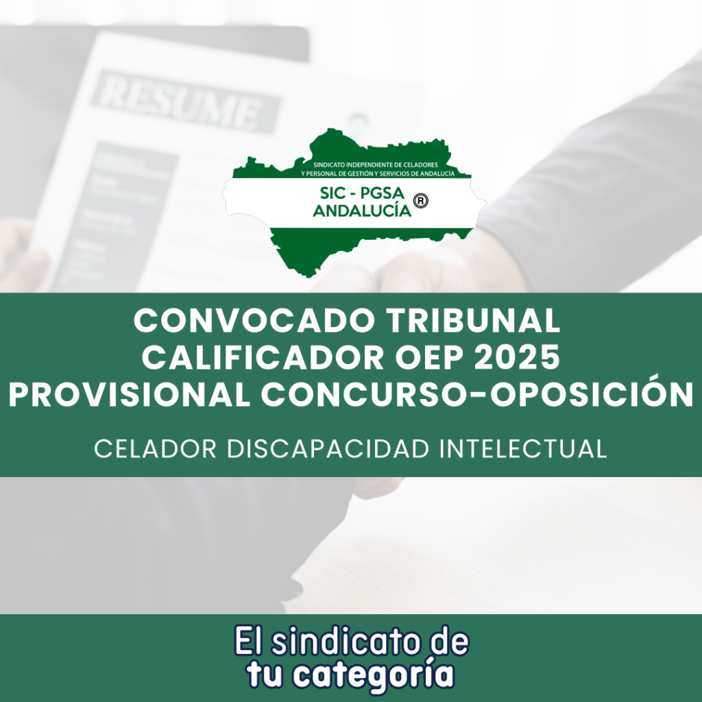 CONVOCADO TRIBUNAL CALIFICADOR OEP 2025. PROVISIONAL CONCURSO-OPOSICIÓN. CELADOR DISCAPACIDAD INTELECTUAL. 19/12/2025