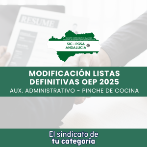 MODIFICACIÓN LISTAS DEFINITIVAS. ADMISIÓN Y CONCESIÓN DE ADAPTACIONES. OEP 2025 FASE OPOSICIÓN. 23/12/2025