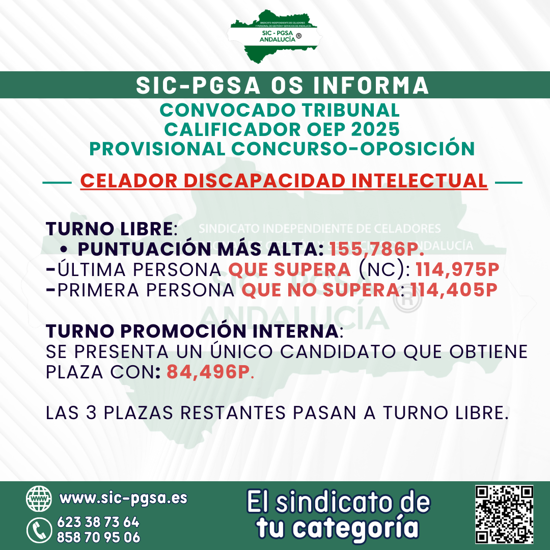 CONVOCADO TRIBUNAL CALIFICADOR OEP 2025. PROVISIONAL CONCURSO-OPOSICIÓN. CELADOR DISCAPACIDAD INTELECTUAL.