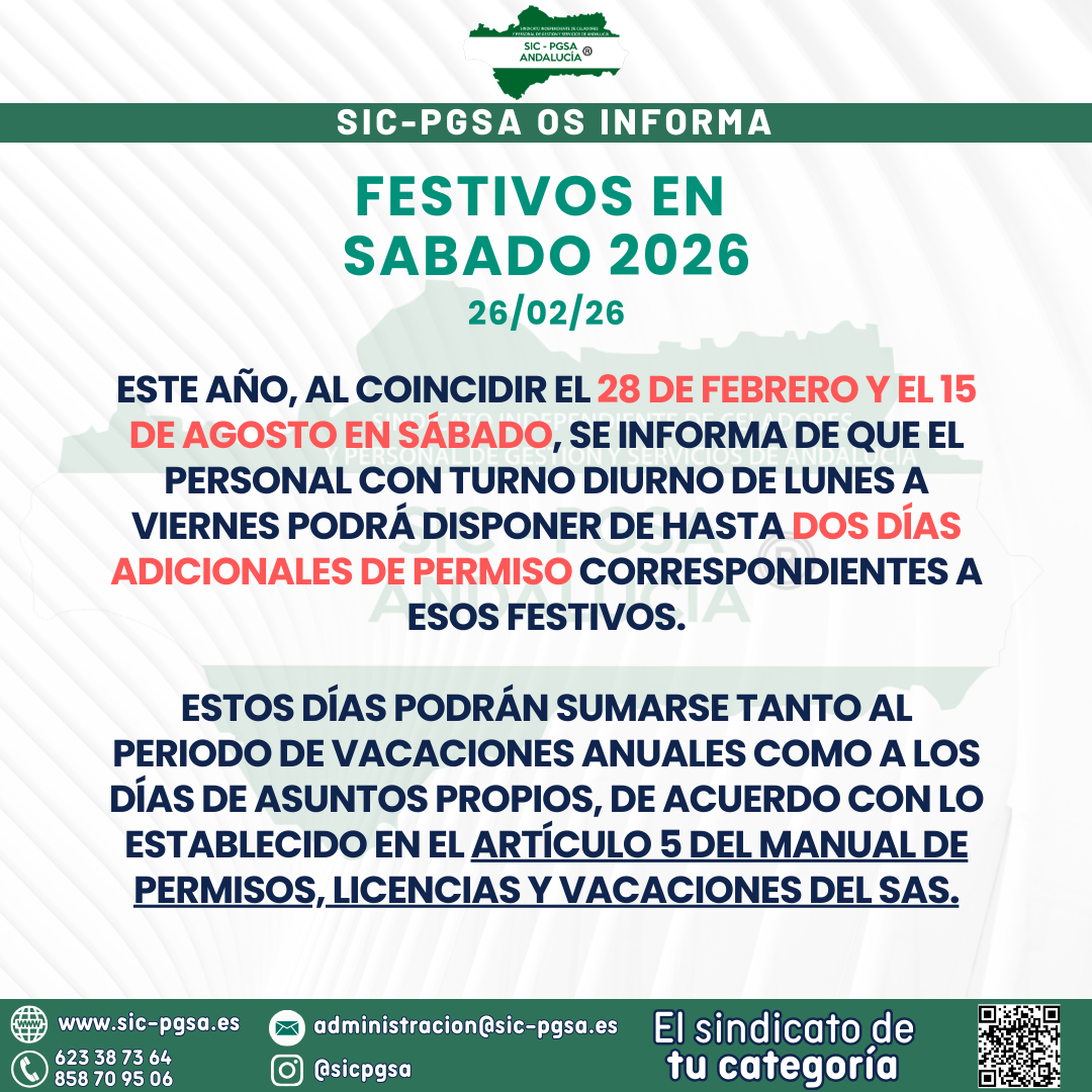 FESTIVOS EN SÁBADO – 2026