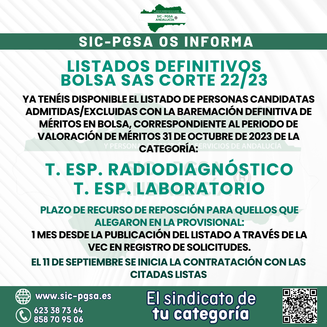 LISTADOS DEFINITIVOS. BOLSA SAS 22/23. RADIODIAGNÓSTICO Y LABORATORIO