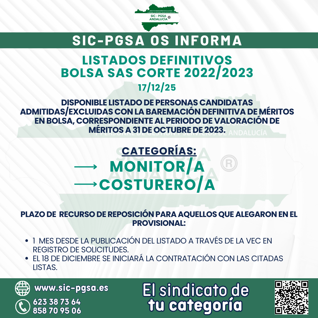 LISTADOS DEFINITIVOS. BOLSA SAS CORTE 2022/2023