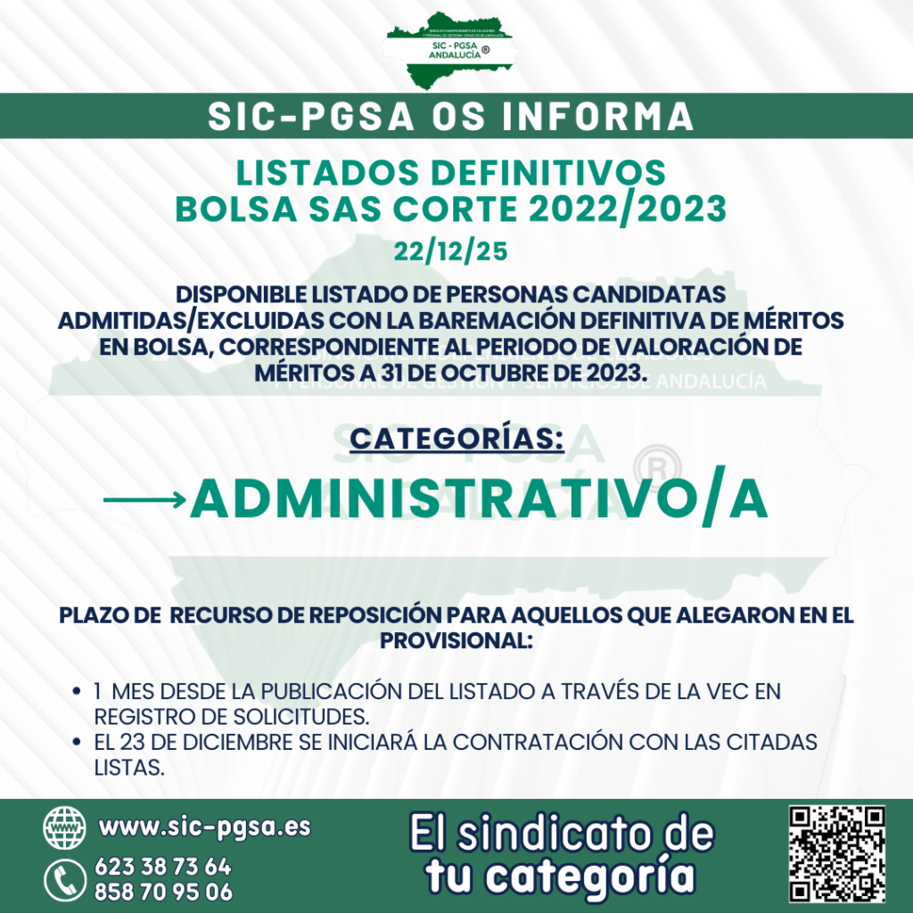 LISTADOS DEFINITIVOS: BOLSA SAS CORTE 22/23. ADMINISTRATIVO/A