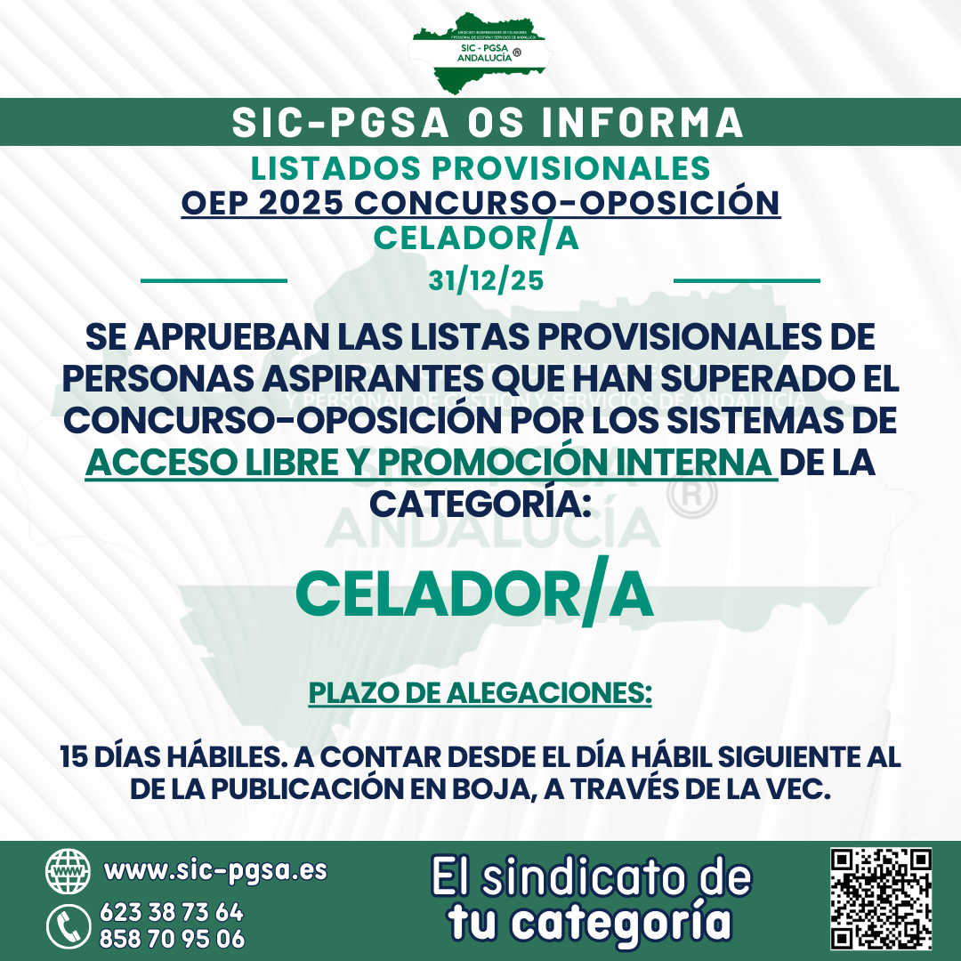 ℹ️Listado Provisional para el concurso oposición: CELADOR/A https://ws027.sspa.juntadeandalucia.es/profesionales/oep_listados/listado_sup.asp?idproceso=83100&t=a&convocatoria=2025