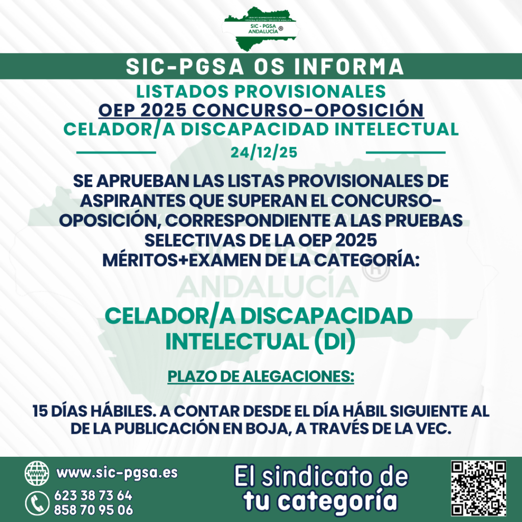 Listado Provisional para el concurso oposición: CELADOR/A – ACCESO DI