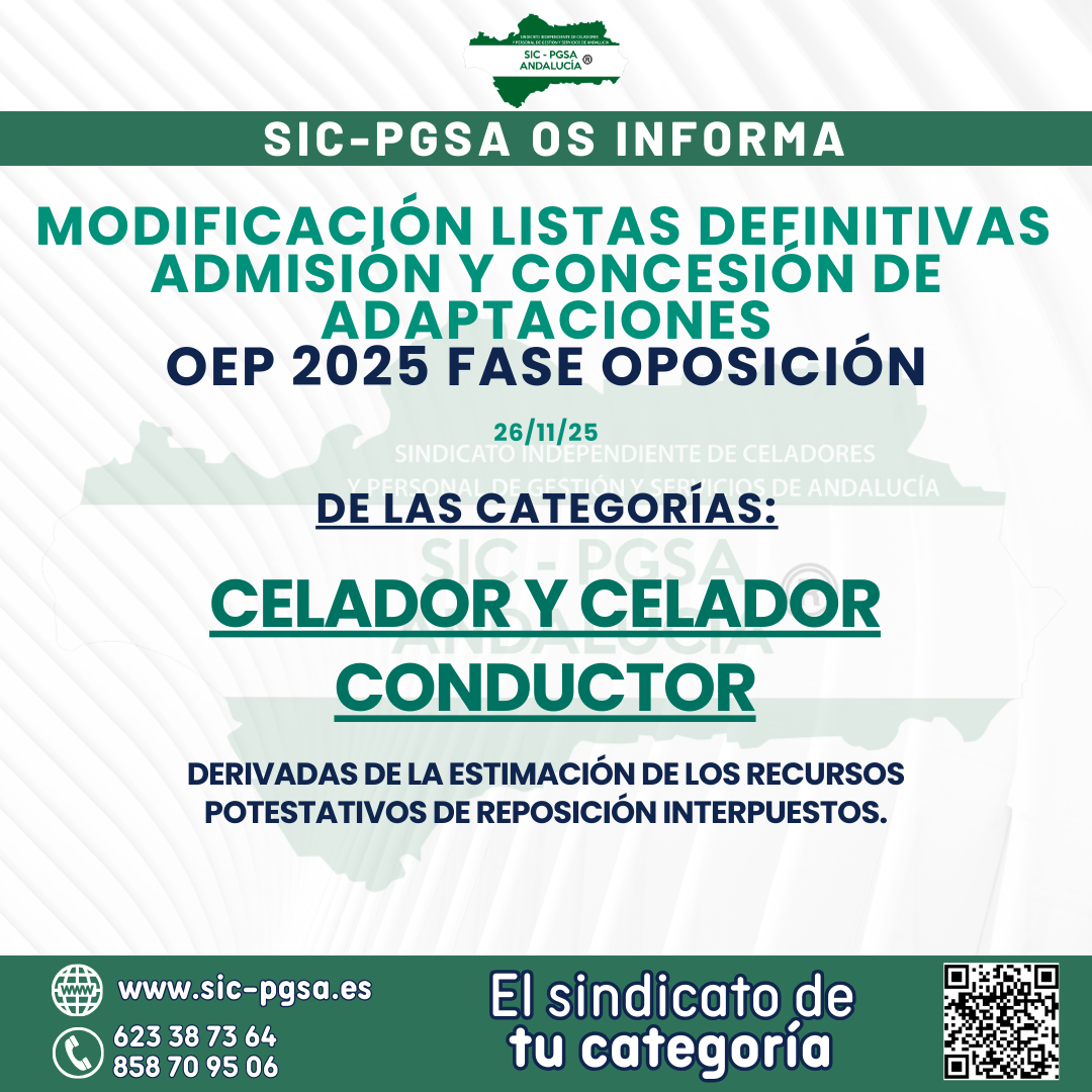 MODIFICACIÓN LISTAS DEFINITIVAS. ADMISIÓN Y CONCESIÓN DE ADAPTACIONES.