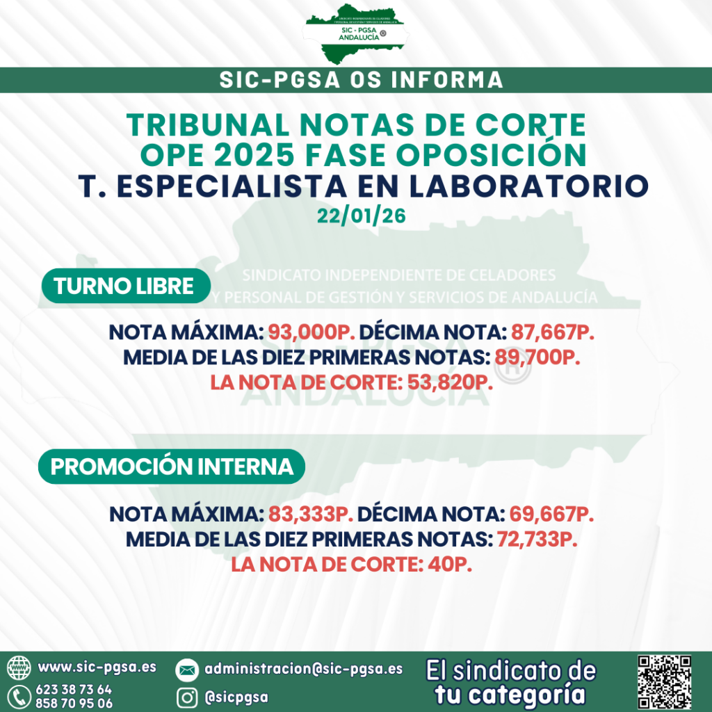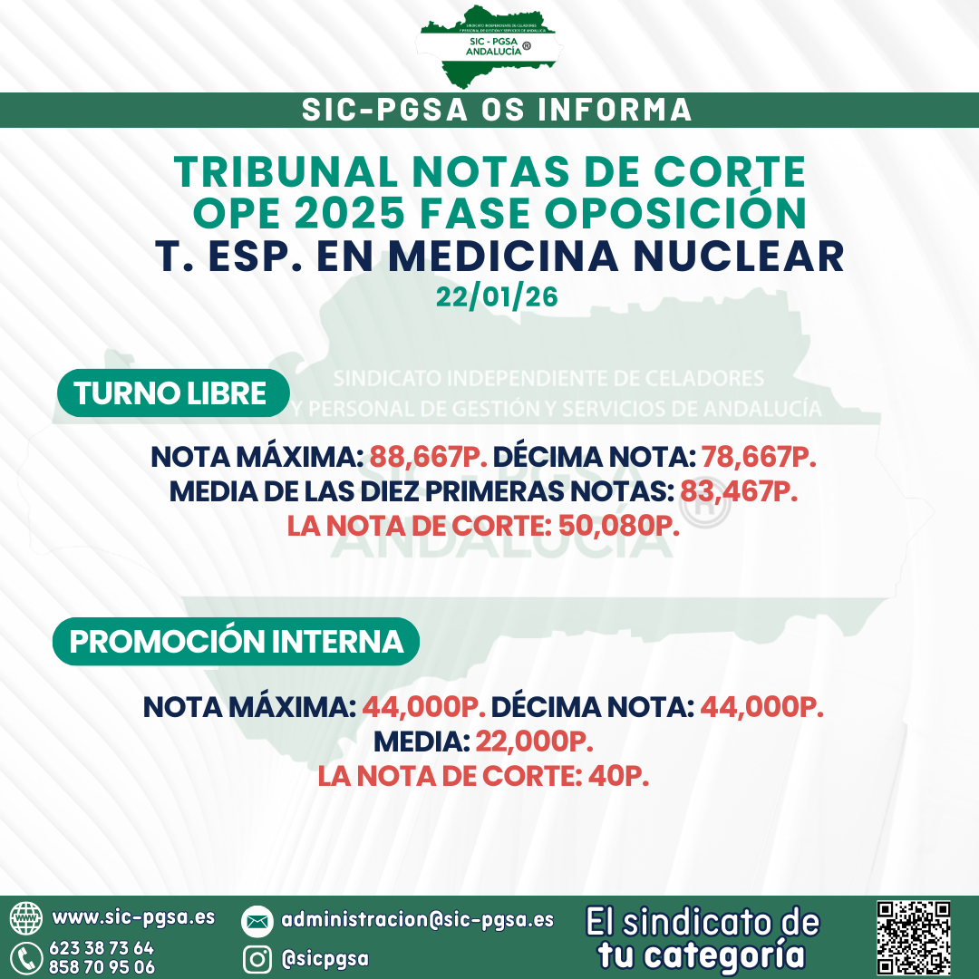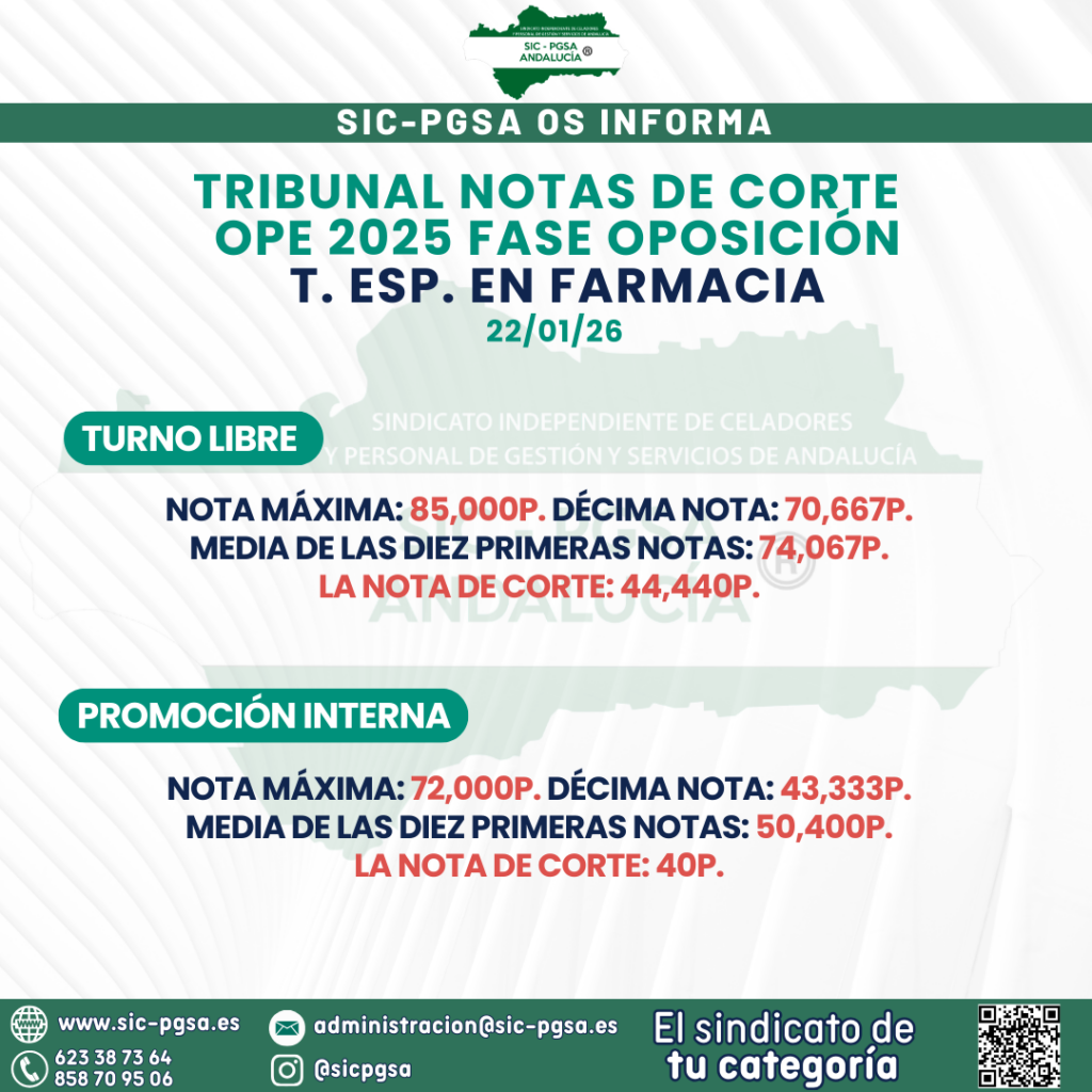 NOTAS DE CORTE FASE OPOSICIÓN – FARMACIA, MEDICINA NUCLEAR Y LABORATORIO