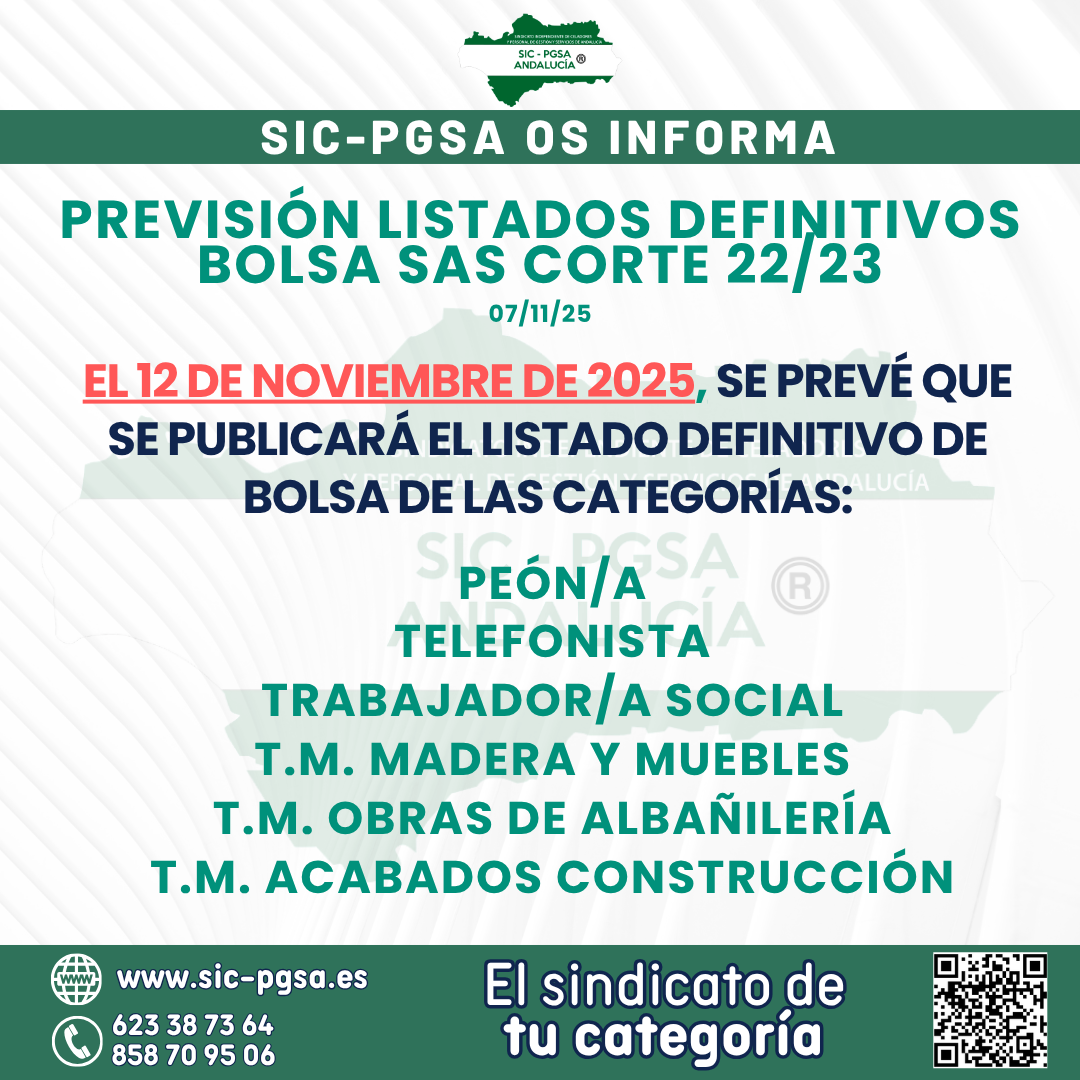 PREVISIÓN LISTADOS DEFINITIVOS – BOLSA SAS CORTE 22/23