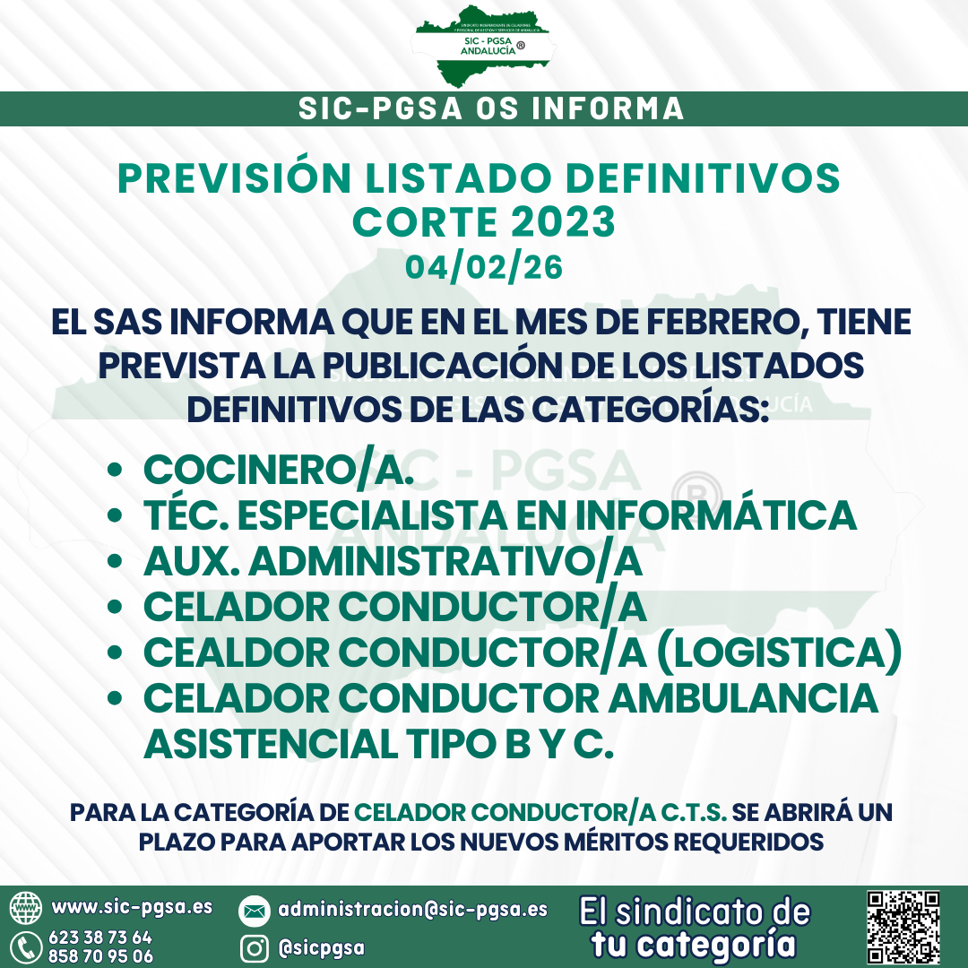 PREVISIÓN PUBLICACIÓN LISTADOS DEFINITIVOS.