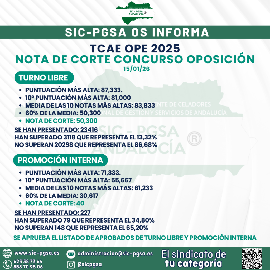 TCAE 2025 – NOTA DE CORTE CONCURSO OPOSICIÓN