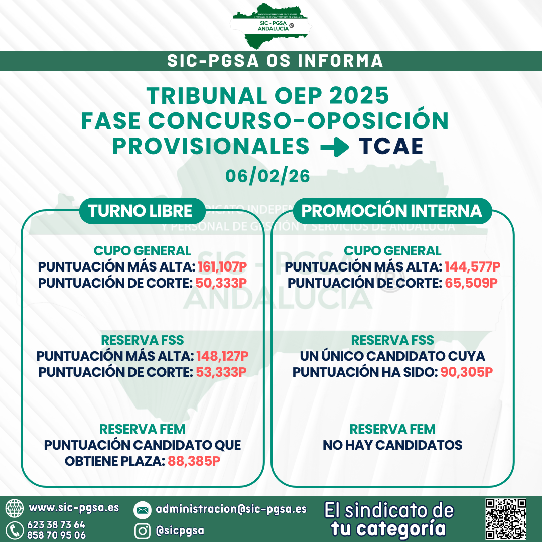 TRIBUNALES NOTA DE CORTE OEP 2025 PROVISIONALES CONCURSO-OPOSICIÓN – TCAE